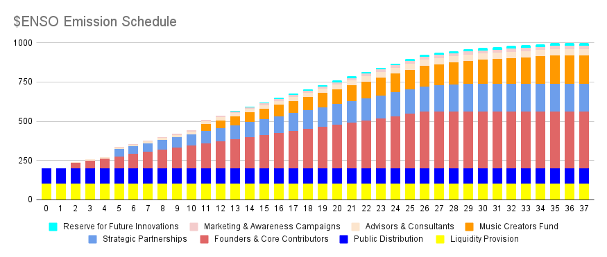 | Founders & Core Contributors (36%) | 0 | 3 months | 10% | 24 months | Daily |